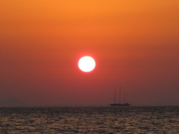 A sunset taken from a cruise to the village of Oia in Santorini, Greece (June 2007)
